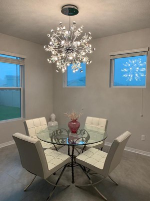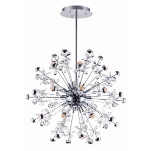 Just like a Supernova releasing a tremendous burst of energy, becoming extraordinarily bright, this collection of lighting sputniks into a brilliant display of crystal and LED illumination. High quality Beveled Crystals are back-lit by LED modules encased in Polished Chrome housings. Additional lighting is diffused through crystalline diffusers. The result of this is a dazzling interpretation of the astronomical event in a lighting sculpture.