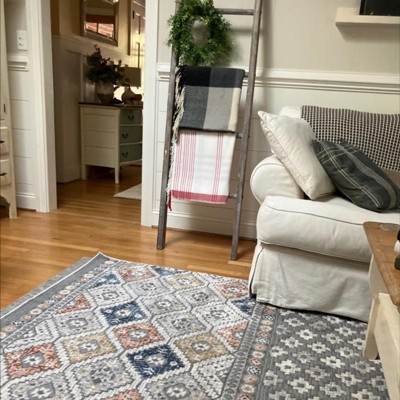 This area rug is beautiful on my hardwood floor. The muted colors are perfect. So glad I purchased this one!!