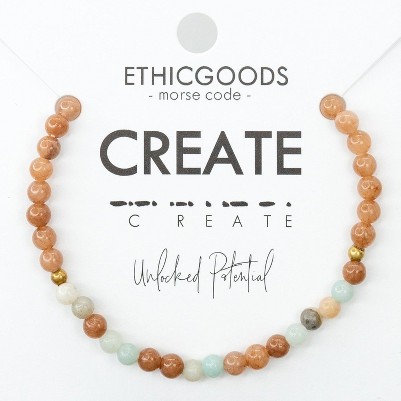 CREATE Unlocked Potential. Your Hard Work + Your Talent = Amazing Things Only You Can Contribute. This bracelet looks great alone or stacked with your other favorite Morse Code or stone stacking bracelets! How to read your jewelry: A Morse Code dot is one bead and a dash is two beads in the alternating color. Start at the small gold spacer bead and follow the Morse Code spelling around the bracelet! Your purchase helps to provide economic empowerment for women who are survivors of human trafficking and exploitation. Each piece is handcrafted by the woman it helps to employ. Through wearing Ethic Goods, you become a meaningful part of her story, and give freedom to women around the world.
