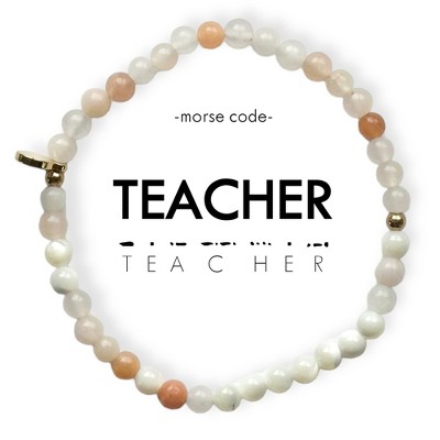 TEACHER To teach is to touch a life forever. Thank you teachers for making a difference ever day!This bracelet looks great alone or stacked with your other favorite Morse Code or stone stacking bracelets!How to read your jewelry: A Morse Code dot is one bead and a dash is two beads in the alternating color. Start at the small gold spacer bead and follow the Morse Code spelling around the bracelet!Your purchase helps to provide economic empowerment for women who are survivors of human trafficking and exploitation. Each piece is handcrafted by the woman it helps to employ. Through wearing Ethic Goods, you become a meaningful part of her story, and give freedom to women around the world.