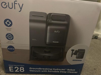 Meet the eufy Robot Vacuum E28—your new cleaning sidekick that makes life easier. With HydroJet™ one-pass deep cleaning, it wipes away dirt without smearing. Need extra help? The detachable spot cleaner tackles pet messes and spills fast.