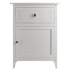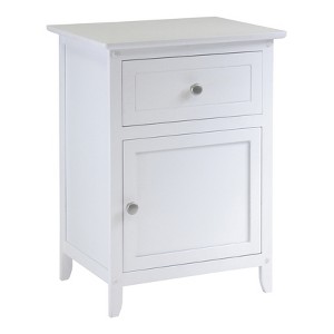 Keep before-bed essentials within arms reach with this White Eugene Nightstand from Winsome. This sturdy wood nightstand features a single drawer and a spacious lower cabinet. The white wood finish works well alongside sofas, reading chairs and beds, and easily blends in with many decor styles. The large drawer at the top can be used to stow anything from bedtime essentials to handy knick-knacks, while the lower cabinet doubles as a storage space for books, magazines and other daily utility items. Plus, the elegantly beveled top offers good space to display your favorite collectibles.