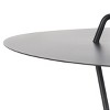 Update your home with our utterly sleek and functional Medalia side table. The refined design of our end table beautifully blends style and functionality. Its slender, angular legs poke through the round tabletop to deliver a stunning visual play and a distinct handle. Both portable and stylish, the end table adorns a black matte finish to lend contemporary flair to your home. With versatile styling potential, our end table allows you to display and keep your essentials within reach.