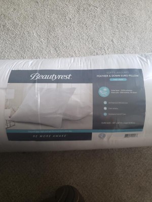 Beautyrest Euro 2pk Feather Down Bed Pillow: 233 Thread Count, 100% Cotton, Firm Duck Down Fill