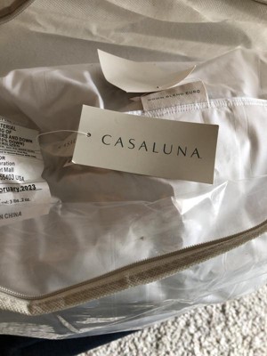This is a great pillow from Casaluna, but it is a bit larger than I thought it would be. It has a soft filling, not firm. It is a down-blend filling and washes up nicely. I washed it using cold water, then tumble dried in the dryer, followed by air drying. Definitely a good purchase if you are looking for a Euro pillow.