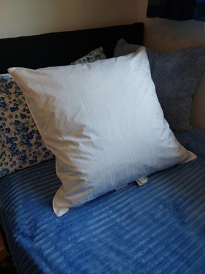 This euro sized bed pillow is large, well stuffed, and a great throw pillow for a bed. It's nice that it is washable and has a good quality outer fabric. It's a little disappointing it leaks feathers through the seams and I can feel some feather ends poking me through the fabric.