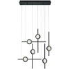Various sized anodized rods suspend vertically in black or gold finishes. Each rod is furnished with a clear seeded glass orb that perfectly sits within an anodized ring. Abstract design / Seeded glass orb diffuses light / Height adjustable / Integrated LED / Wipe with dry microfiber cloth. , Material: Aluminum, Finish Color: Black, Width: 7.75", Height: 23.5", Length: 32.5", Lamping Type: LED, Number Of Bulbs: 6, Wattage: 6 Watts, Cri: 90, Color Temperature: 3500 Kelvin, Lumens: 1761, Dimmable: Yes, Moisture Rating: Dry Rated