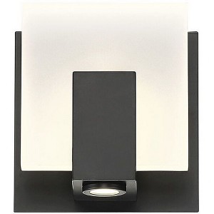 Canmore 1-Light LED Wall Sconce, Black Finish with Illuminated frosted acrylic diffusers vertically seated on a chrome frame housing a subtle LED downlight. Product Type: Wall Sconce / Fixture Style: Transitional / Cable/Wire Length: 120 inches / Mounting Type: J-BOX / Location Type: DAMP Location / Bulbs Included: Yes / Lumens: 720 / Bulb Kelvin: 3000 / Dimmable: YES / More information: 8W/LED 3000K/720lm (dimmable) / More Information: Illuminated frosted acrylic diffusers / More Information: Rated for damp locations / Canopy Backplate Length: 5 Inches / Canopy Backplate Height: 1.25 Inches / Canopy Backplate Width: 5 Inches . ,