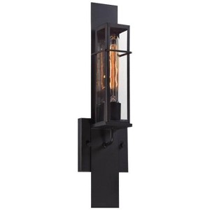 Increase the warm, inviting look of an entryway, porch or garage with this elongated bronze outdoor wall light and its contemporary spin on classic Mission style. The strong rectangular design of this metal fixture is accented with panes of rippled clear glass that that glow from a single vintage-look Edison bulb inside. An invigorating addition to your home's exterior decor from Eurofase.
