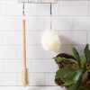 - Bamboo long handle design made with natural bristle body brush; Solid one piece design with hanging string for convenience; Pamper yourself at home with this exfoliating brush and our other quality spa products - You deserve it
