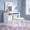 - COMFORTABLE SEATING: Completing the set is a matching vanity bench with a padded seat. The cushion is adorned with white polyester linen look fabric that incorporates a subtle hint of silver thread, providing both comfort and style. With soft close hinges for safe and smooth operation and a weight capacity of up to 250 lbs, this vanity set offers a combination of beauty and functionality that enhances any living space.