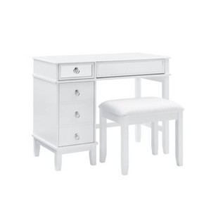 - STYLISH AND FUNCTIONAL DESIGN: The Eva Vanity Set in White by Linon combines style, storage, and functionality in a chic and sophisticated package. Its sleek white finish and mirrored front create an elegant aesthetic that complements any room.