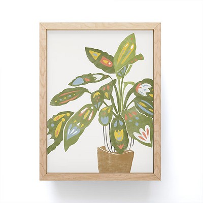 Evamatise Gold And Green Palm Leaves 4" x 3" White Framed Mini Art Print - Society6