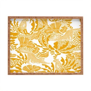 evamatise Surreal Jungle in Bright Yellow Rectangular Bamboo Tray - Deny Designs