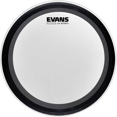 With accentuated low-end response, the EVANS EMAD Resonant bass drum head is constructed using a 7.5-mil black film with a 6.5-mil fixed internal control ring. It comes with an Externally Mounted Adjustable Damping system installed around the 4" offset microphone port that allows the user to manipulate attack, tone and sustain without the need for internal damping.