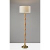 Update your space with a touch of modern bohemian style with the Eve Floor Lamp. The lamp body is made up of a natural oak wood, a durable material that reveals an attractive wood grain. A tapered antique brass metal base provides a decorative accent while also keeping the lamp strong and sturdy. An off-white textured fabric drum shade is the perfect compliment to these soft toned wood and metal materials. A simple on/off switch is located on the socket which is made to house up to 100 Watts.