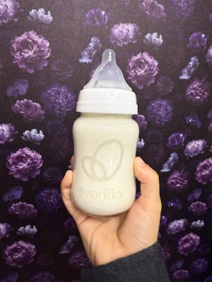 [This review was collected as part of a promotion.] I received this item for free in exchange for my honest review thank you influenster and Evenflo. These are high quality eco friendly glass bottles . I love the thickness of the glass yet the right weight for babies to hold . Holds up to 6 fl oz .Definitely leak proof but I wouldn't say the nipples replicate a breast very well the nipple is a bit harder than I would like and it is too wide for a newborn in my opinion. Flat lids for individual purchase available to store snacks or extra drinks..