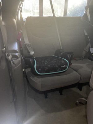 [This review was collected as part of a promotion.] We tested the Evenflo GoTime No Back Booster Car Seat provided by Stellar Product Testing Panel. While we were using the booster seat my daughter said it was comfortable, it looked good, and she had more space because it did not have a back part like her original car seat. My 3rd grader felt like an older kid. It was easy to install. The instructions were easy enough. I put the seat belt on her the first time using the seat. We utilize the strap that came with the GoTime. I can admit the seat looks good. It utilized smaller space in the car. It has a space theme to it. It did not scream too girly or boy. Everything seemed simple with it. She could buckle herself in the booster seat. It still had the luxury of having cup holders. For me, simple is best. However, while driving I turned around to talk to her and noticed she was not in her seat incorrectly. She slid down in her seat in a weird way. I had to remind her to sit in her seat the right way. Because of this, I have to say that I would only use this when I am traveling. Human error on my daughter's part made me put her back into the old car seat until she is older and can sit responsibly in her seat. I would take this traveling with me. Going on the plane or in a new car, I am the parent who is lugging all of the luggage and heavy full-size car seats. Because of all of that this is a really good traveling car seat for older kids who can sit in it properly.