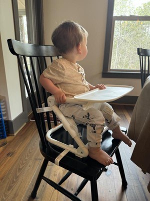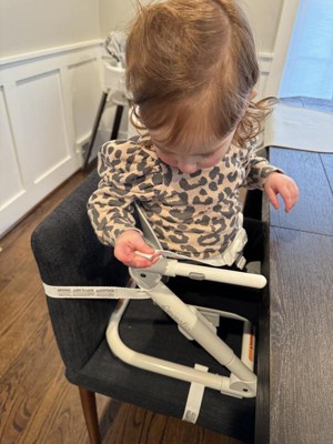 Features: Adjustable Height, BPA-Free, Removable Tray, Safety Harness, Folds for Easy Transport and Storage, Straps Securely to Most Dining Chairs