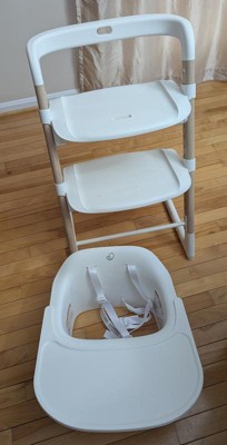 Pros: I chose this highchair primarily for its sleek, modern design—it looks great in our home. The 5-point harness is a key safety feature that I appreciate, and I like that it’s designed for multistage use, making it a longer-term investment compared to other models. Cons: The white straps stain very easily and aren't wipeable, which is frustrating for a highchair at this price point. While they are removable, taking them out and putting them back in is a hassle. The chair is quite heavy and not easy to move around the room. Even though there aren't many cracks for food to get stuck in, cleaning it still requires a thorough effort. Also, the footrest isn't adjustable enough to work for my 10-month-old, which impacts their comfort.