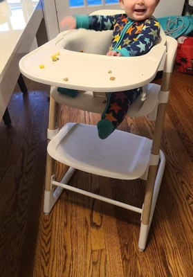[This review was collected as part of a promotion.] I've been using this high chair with my youngest who is just starting solids for a few weeks now after receiving it as part of the Stellar Product Testing Panel for review and it's a great high chair with only a few small annoyances. The cleanability on it is EXCELLENT. There are no liners or fabrics to remove and wash - everything is smooth plastic and easy to wipe down or wash in the sink. The food tray is dishwasher safe as well. The only real crud crack is between the tray and the chair but removing the tray makes this easy to wipe up. Setup was easy with just a few bolts to attach for the legs and the final look is very unoffensive and modern/minimalistic so I have no problem leaving this sitting out in our dining room. The materials feel very sturdy and the chair has nicely designed hand holds on either side making it easy to pick up and move. The chair is designed to be adjustable and has a few different "modes" you can adjust to as they grow, starting from a high chair and moving to a small kid's chair and eventually a larger chair or small desk if they sit on it backwards. The only real issue we've had is that the seat itself is very deep and our child isn't able to bend their legs much while sitting in it at the moment. The lower foot rest doesn't raise up high enough for them to use as a foot rest while eating. Having a good foot rest for babies starting solids helps reduce the risk of choking by improving their stability while eating but we are always present while they're using it so it's a minor issue. Adjusting the chair is very easy, there are spring loaded pegs on either side you pull out and can raise/lower the foot rest or seat to match your table height which is another nice feature. All in all a very nice high chair and would definitely recommend it if it's within your price range.