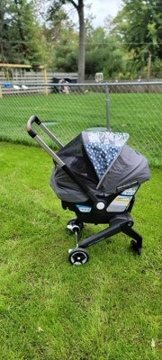 Extremely disappointed with this item! Coming from previous Doona user, evenflo completely missed the mark on this product. The flimsy way the elastic bands hold onto the carsest means I am trying to fix it multiple times during even a simple trip to the grocery store or doxtors visit. With Michigan's weather I was really looking forward to an item that would block most of the wind, rain and wet snow. A simple button or other fastener would keep a busy 5 months old feet from kicking it off constantly. The constant adjusting is beyond frustrating and could have been designed so much better, until they revamp this item, dont waste your money and just throw a blanket over the top.