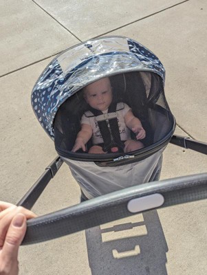 [This review was collected as part of a promotion.] I received this product in exchange for an honest review from Stellar Parent testing panel. Overall, I think it’d be a great product for rain or bugs. I wish I’d had more time w/it bc I didn’t get to actually test it in either of those elements. I also think it’d be better if you could keep it on at all time rather than having to put it on one the carseat/stroller is out of the car. I probably would not use it in heat or as shade from the sun bc I have seen how hot car seats can get with this type of cover even with mesh or in mild 60+ degree weather.