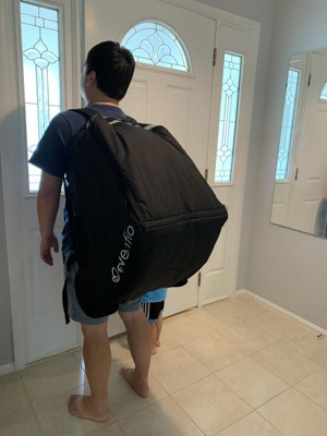 [This review was collected as part of a promotion.] I was given this travel bag to test as part of the Stellar Product Testing Panel. This bag is really well made and we already used it on a trip. I think the best part is the flap to access the wheels for ease of transport. I think there is no "ideal" way to lug around a carseat as a backpack, as you are just this person with a monstrosity of a backpack, but this bag at least makes it that much more of a breeze. We were using a different one before and because this is designed to fit this stroller, it of course works much better. You still have the room to sneak other items in like diapers etc when traveling, which is a great bonus. I loved the grippy bottom, side pockets for stashing things, and multiple handles everywhere on the bag. You can carry it any way you please. It also has a nice travel bag to stash it in when you aren't using it. The only qualm for me is the pricepoint. I love this stroller and now this bag, but it would be nice to make it accessible to a wider range of the population.