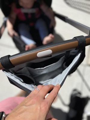 [This review was collected as part of a promotion.] I had high hopes for this concept, and in some ways it came through ... but in others, it was a disappointment. For starters, it's larger than the current cross-bodies I own. This alone makes it extremely handy for a mom of two under 2! Wipes, diapers, extra onesie ... you can really make use of the space it offers. There's also great little side pockets to store smaller items like pacifiers (I hate digging through large bags for them!). The fact that the bag is black makes it blend in if you're not crazy about the look of it. I personally don't mind the way it looks and have worn it on my waist as well. I live in Florida, which is hitting close to 95 every day right now, so another perk to the bag is the outside lining that goes against your body. My biggest cons are when the bag is attached to the stroller. I still don't have an option on my DualRide for my Stanley cup (or any larger cup). I'm a nursing mom, so I need to have a large cup of water on hand and it just won't hold anything substantial. It will hold my babies' smaller water bottles great, though. I've even tried some of the heavier ones like the kid hydro flasks. My other con is that it does feel somewhat insecure when attached. If you add any bigger or heavier items, it kind of tips backwards and seems like it could fall. When it starts tipping too much, I take items out so I haven't had it actually fall back. I understand why the "hooks" are on the inside of the bag (so you don't see them when wearing it), but leaving the top open isn't ideal. It also doesn't really lie flat, so it's kind of just sticking out at a weird angle. Another small gripe is having the hooks with velcro near your hands ... it's not the most comfortable when you're using it on longer walks or trips. All in all, it's a great option if you're looking for something versatile that can hold your essentials in more ways than one! Thanks to the Stellar Product Testing Panel for providing me with this car seat accessory.
