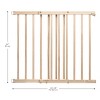- Extra-tall childproof wooden baby gate offers convenient indoor installation