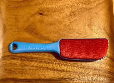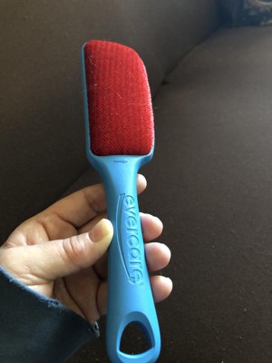[This review was collected as part of a promotion.] The brush is blue with red fabric. A nice change from the usual black. The handle is straight with Evercare etched into it making it easy to grip. I love that it is double sided so that you can brush both directions. The brush has a hole at the end if you want to hang it up for easy storage. I keep mine in my sock drawer. Works well on many different types of fabrics especially clothing and furniture. I have a cat and a dog so this brush comes in handy daily. It easily removes pet hair from the sofa no problem. I often get lint balls on my duvet cover after washing and have found this brush to work quite well in removing them as well. I have used it too many times to count since getting it and it is still intact and continues to work well. Nice quality lint brush.