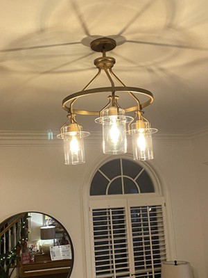 [This review was collected as part of a promotion.] This 3 light pendant fixture is gorgeous! It is so easy to install. The light shines through the glass brightly. I hung this in an entryway with a higher ceiling that need something simple yet elegant.