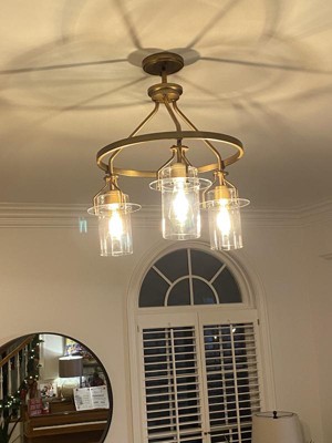 [This review was collected as part of a promotion.] This is a beautiful and sturdy light fixture! The glass is thick and perfectly clear. The size is just right for a smaller dining area. Love the muted gold tone for a mixed-metal look. Easy to install but it is heavy so need a partner to help!