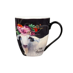 Evergreen Ceramic Cup O' Java, 17 OZ, Floral Goat - 1 of 2
