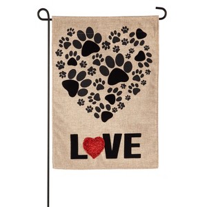 Evergreen Flag Paw Prints Heart Garden Burlap Flag - 1 of 4