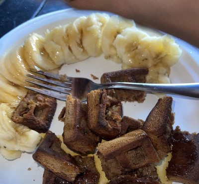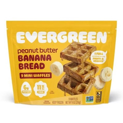 - EVERGREEN Peanut Butter and Banana Bread Frozen Mini Waffles are the ultimate back-to-school breakfast or after-school snack. Just heat, eat, and go!