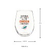 - Measures approximately 3.75 x 5 inches. This stemless wine glass is hand wash recommended. Comes with a matching gift box.