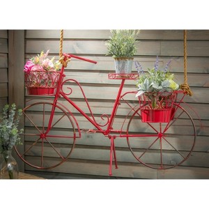 A: The bicycle planter can hold up to three plants in its designated pots.