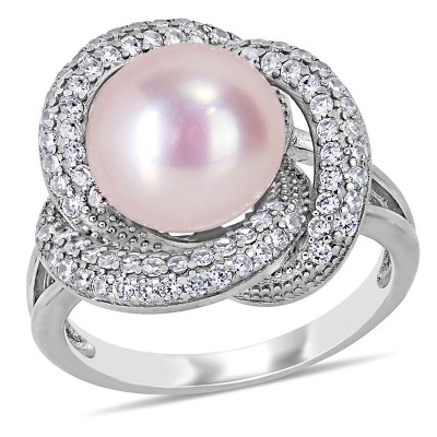EVERLY JEWELRY | 10K White Gold 1 3/5 CT TGW Pink Topaz and Diamond Accent Halo Engagement Ring