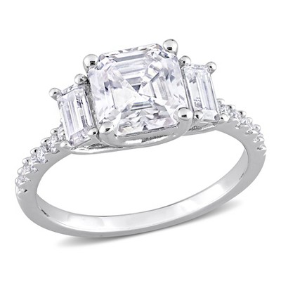 EVERLY JEWELRY | 10k White Gold 1.76 CT DEW Octagon Created White Moissanite 3-Stone Engagement Ring