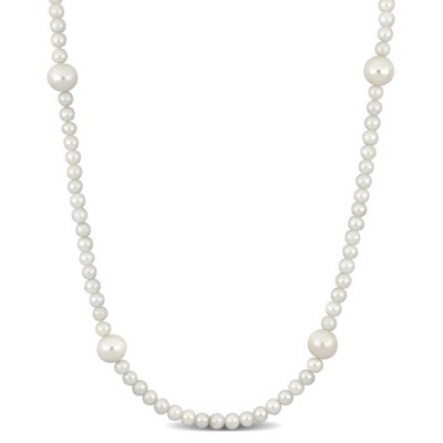 EVERLY JEWELRY | 2mm Cultured Freshwater Pearl Station Necklace - 22 in