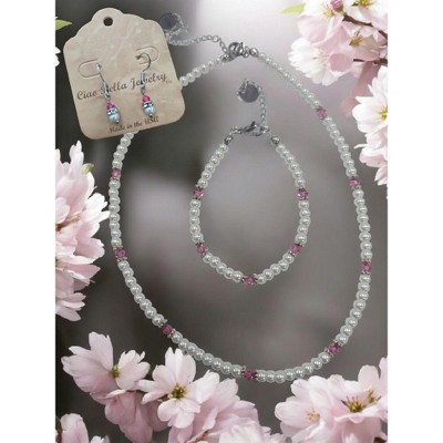 EVERLY JEWELRY | 7 5/8ct TGW Created Pink and White Sapphire Necklace Ring and Earrings 3-Piece Set in Sterling Silver - 18 in - 1 of 4