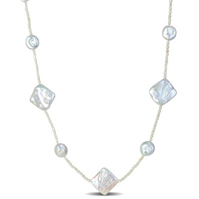EVERLY JEWELRY | 7-8mm and 2mm Cultured Freshwater Pearl Station Endless Stackable Necklace, 32 inc