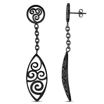 EVERLY JEWELRY | Black Rhodium Plated Stainless Steel Square Swirl Earrings