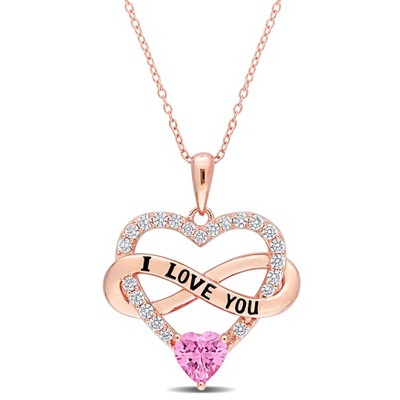 EVERLY JEWELRY | Rose Plated Sterling Silver 1/2ct TGW Created Pink Sapphire Crossover Heart Pendant with Chain, 18 inc
