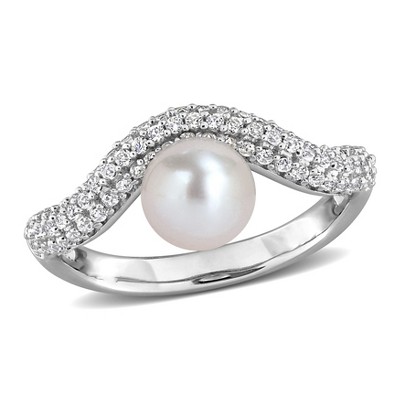 Everly Jewelry Amethyst & White Topaz Anniversary Ring, crafted in rose-plated sterling silver for a romantic and timeless sparkle.