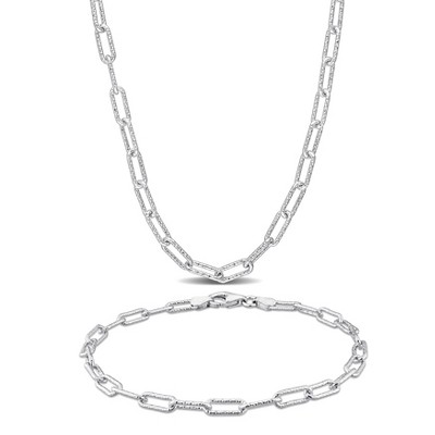EVERLY JEWELRY | Rose Plated Sterling Silver Double Heart Paperclip Link Chain Necklace and Anklet Set -18 in + 9 in