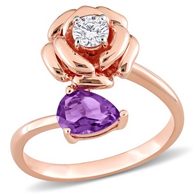 EVERLY JEWELRY | Rose Silver 3/5ct TGW Heart Shape Amethyst and Diamond Accent Wrap Ring