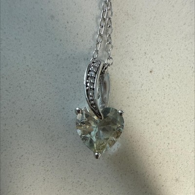 EVERLY JEWELRY | Sterling Silver 0.018 CT Diamond TW & 1 1/2 CT TGW Aquamarine Heart Pendant With Chain