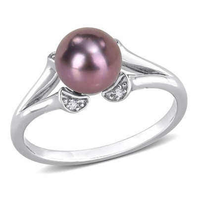 EVERLY JEWELRY |Sterling Silver 0.02 CT TW Diamond 8 - 8.5 MM Black Freshwater Cultured Pearl Cocktail Ring